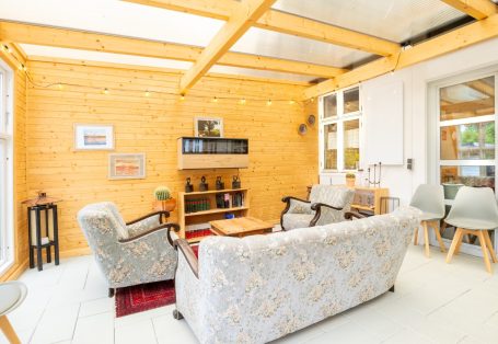 Das liebevoll restaurierte Fachwerkhaus in Mirow spiegelt den einzigartigen Charakter der Region Mecklenburg-Strelitz wider. Der behutsame Erhalt der ursprünglichen Bauweise lässt Sie in eine Zeit eintauchen, in der Handwerkskunst und Tradition großgeschrieben wurden. Die sorgfältig restaurierten Fachwerkwände, die historischen Holzbalken und die warmen Holzfußböden schaffen eine Atmosphäre, in der sich Geschichte und moderne Gemütlichkeit vereinen. Jede Ferienwohnung ist individuell gestaltet und bietet Ihnen höchsten Komfort in einer historischen Umgebung – ideal für Paare, die Ruhe und Erholung suchen. Der Wintergarten und der Außenbereich laden zum gemütlichem Beisammensein ein.